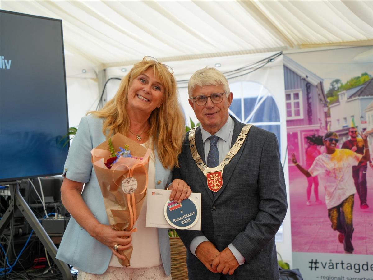Likestilt arbeidsliv sertifiserte virksomheter er alle fyrtårn for sosial bærekraftLikestilt arbeidsliv gjennomfører en årlige sertifiseringsseremoni under Arendalsuka. På Arendalsuka 2025 hadde vi gleden av å ønske hele 11 virksomheter velkommen på scenen. Årets sertifiserte virksomheter har gjennomført et grundig og målrettet arbeid med mangfold, likestilling og inkludering. Gjennom sitt engasjement har de vist at sosial bærekraft ikke bare er en målsetning - det er et ansvar de tar på alvor. Sertifiseringen er et bevis på den innsatsen de har lagt ned for å skape inkluderende arbeidsmiljøer og et mer likestilt arbeidsliv.Statsforvalteren i Agder ved Gina Lund mottar andre gang sertifisering fra fylkesordfører Arne Thomassen Christina Kvernvik, AFK Vi er stolte av å løfte frem deres arbeid, og vi ser frem til å følge utviklingen videre.Les mer om årets førstegangssertifiserte virksomheter:SpareBank 1 Hallingdal Valdres – deres første Likestilt arbeidsliv‑sertifiseringVennesla kommune – deres arbeid med likestilling og inkluderingLindesnes kommune – mottok sin første Likestilt arbeidsliv‑sertifisering i årVi har valgt å sertifisere oss fordi vi ønsker å ta et tydelig standpunkt for mangfold, inkludering og likestilling – og mot utenforskap og diskriminering. Dette er verdier som skal gjennomsyre hele organisasjonen vår, sier administrerende direktør i Sparebank 1 Hallingdal Valdres, Knut Oscar Fleten.Dette er en stor dag for Vennesla. Vi er gjennom et nåløye. Samtidig er det nå jobben starter. Vi må levere og vise at vi bygger en mer rettferdig og inkluderende framtid for alle. Vi har bruk for forskjellige mennesker, og alle har noe å bidra med, sa ordfører i Vennesla kommune, Nils Olav Larsen i sin takketale.Vi tror på at mangfold skaper merverdi – både for arbeidsmiljøet og for tjenestene vi tilbyr innbyggerne. Når folk med ulike bakgrunner og perspektiver jobber sammen, gir det grobunn for både kreativitet og innovasjon, sa Lena V. Wilhelmsen, organisasjons- og personalsjef i Lindesnes kommune, i sin takketale. I tillegg til de nevnte førstegangs sertifiserte har GE HelthCare, Agder Fylkeskommune, Strømmestiftelsen, Arendal kommune, Sørlandet sykehus HF, Dyreparken, Statsforvalteren i Agder og HMH har vært gjennom en resertifisering. Publisert 21.08.2025 13.00