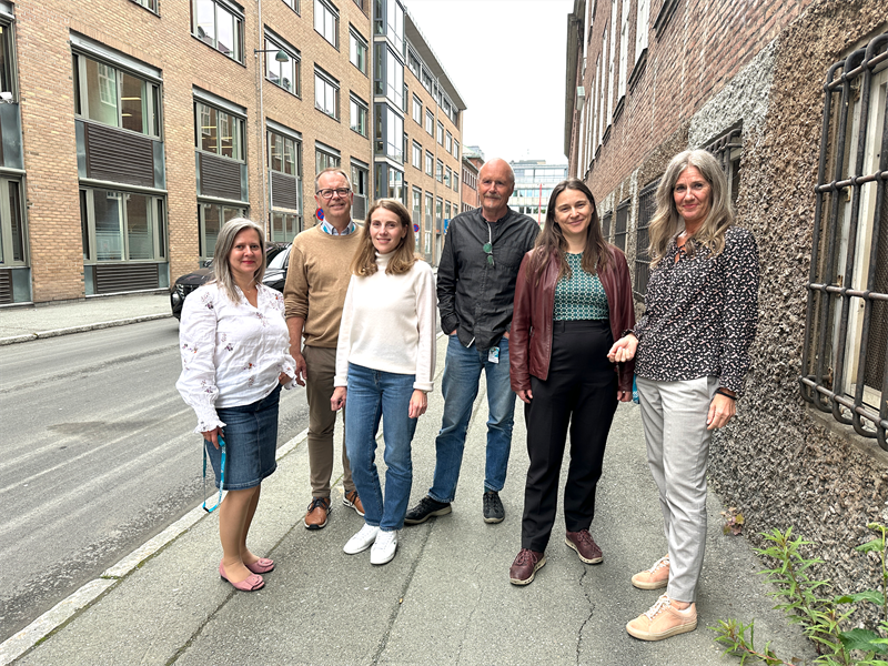 (F.v.) Monica Haaseth, hovedtillitsvalgt for Utdanningsforbundet, Odd-Inge Strandheim, seniorrådgiver seksjon regional kompetanse, Bjørn Aspaas, hovedverneombud, Tanya Skjønshaug, sertifisør under opplæring, Frøydis Sund, sertifisør i Likestilt arbeidsliv fra Likestillingssenteret og Marit Moldjord, prosjektleder og seniorrådgiver ved seksjon organisasjon i Trøndelag fylkeskommune.