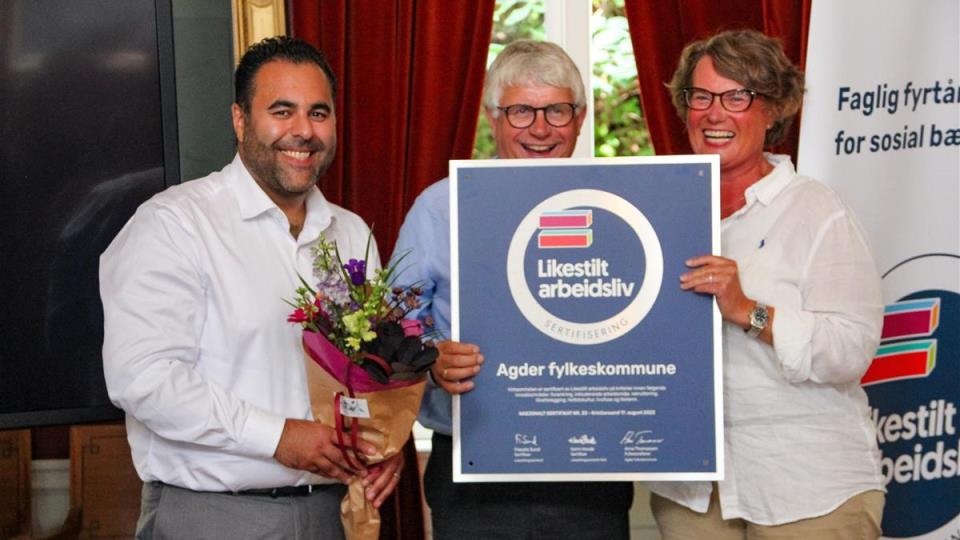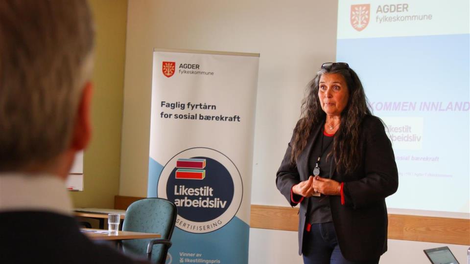 Agder fylkeskommune løfter fram sosial bærekraft I slutten av mai ble Agder fylkeskommune, som den første fylkeskommunen i landet, sertifisert i Likestilt arbeidsliv. Både Siren Vetnes Johannessen, l...